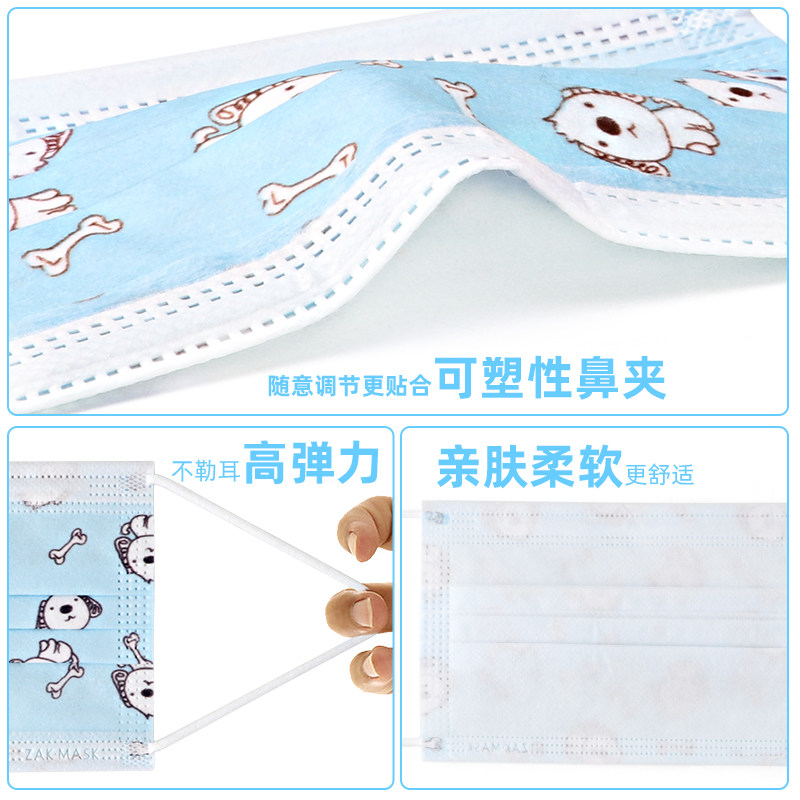 Children's three-layer disposable black fashion mask cute cartoon boys and girls students individually packaged mouth and earmuffs