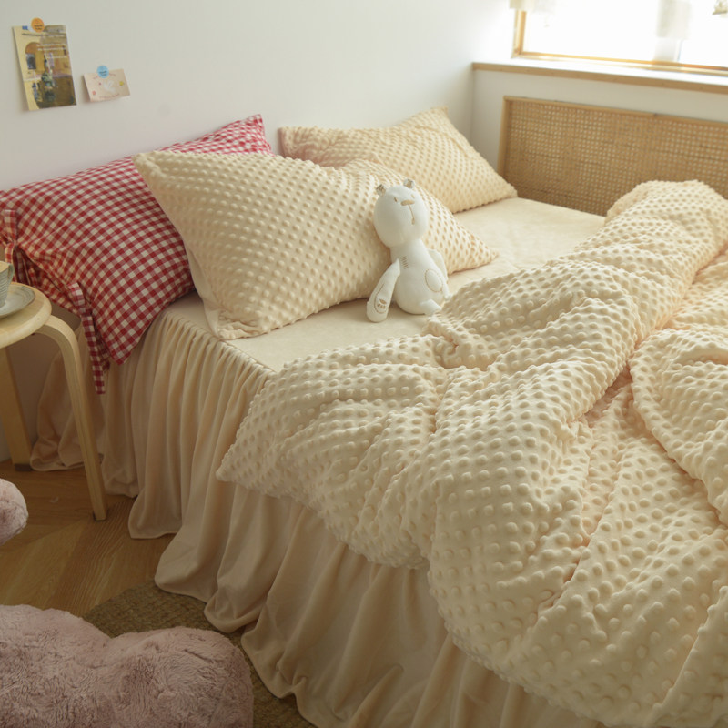 ins autumn and winter warm bean suede bed three-four pieces sleeve thickened double face baby short plush quilt cover blue bed product
