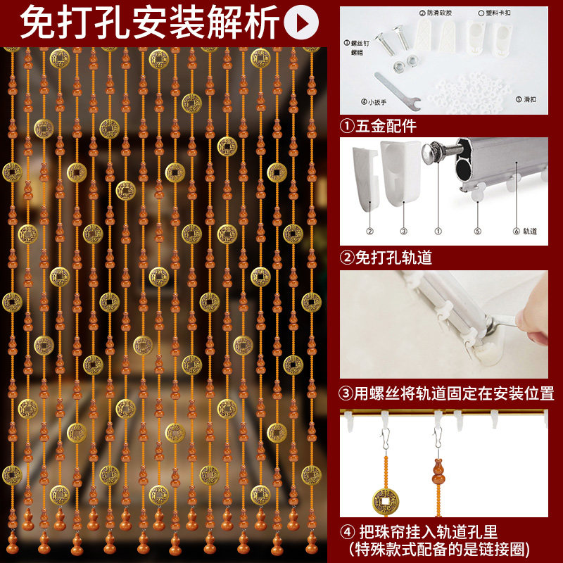 Peach bead curtain curtain cucumber cut to door-free drawing room bedroom 5 yuan decoration household toilet curtain