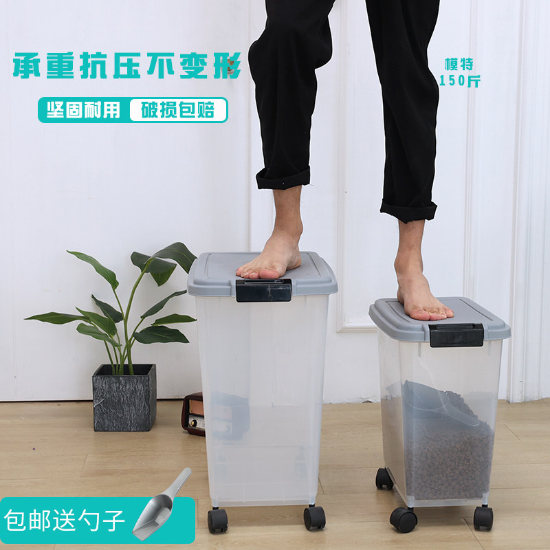 Dog food box Cat food bucket Sealed storage bucket 20kg Pet storage bucket 15kg roller cat food storage bucket Moisture-proof