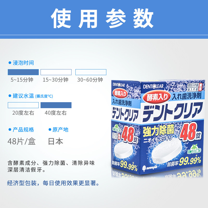 Japan novopin fake tooth cleaning sheet 48 pieces of tooth cover holder foaming ingots liquid cleaning false tooth imports