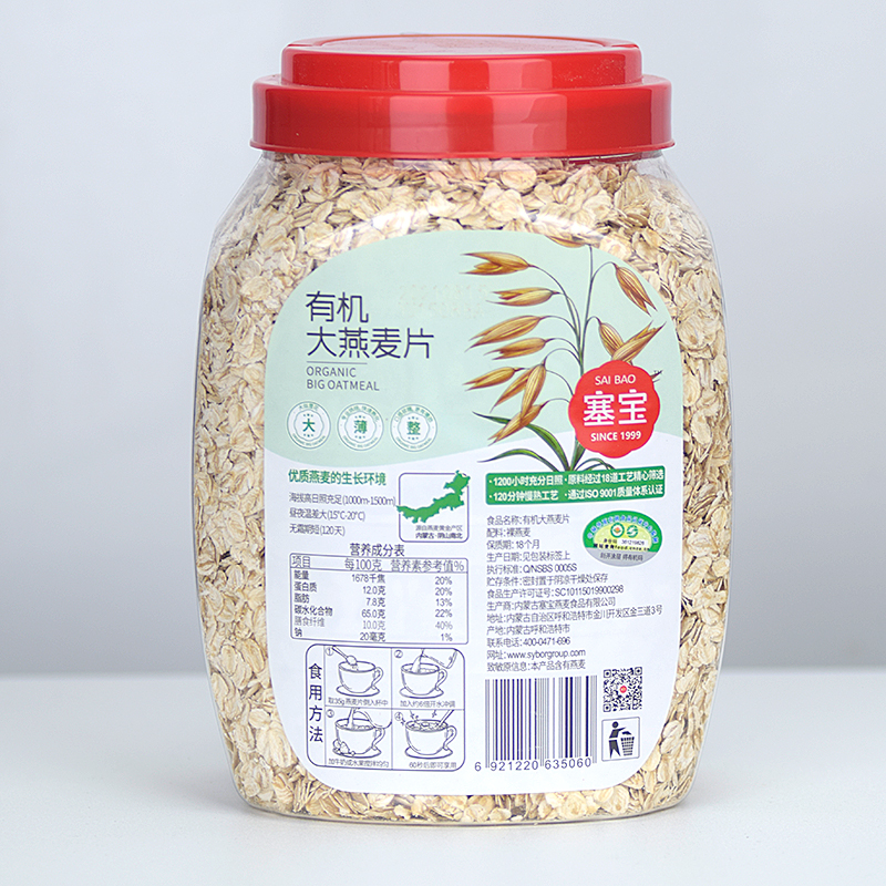 Sebao Organic Oatmeal 1000g Ready-to-eat Saibao Original Taste Breakfast free of cooking and canned Rinpure Oatmeal