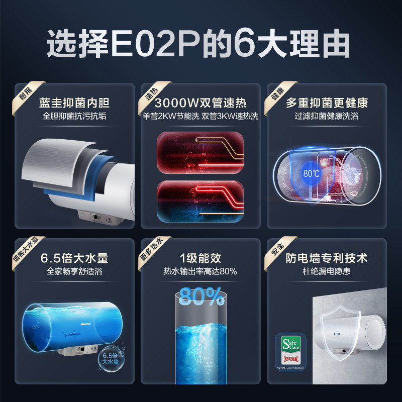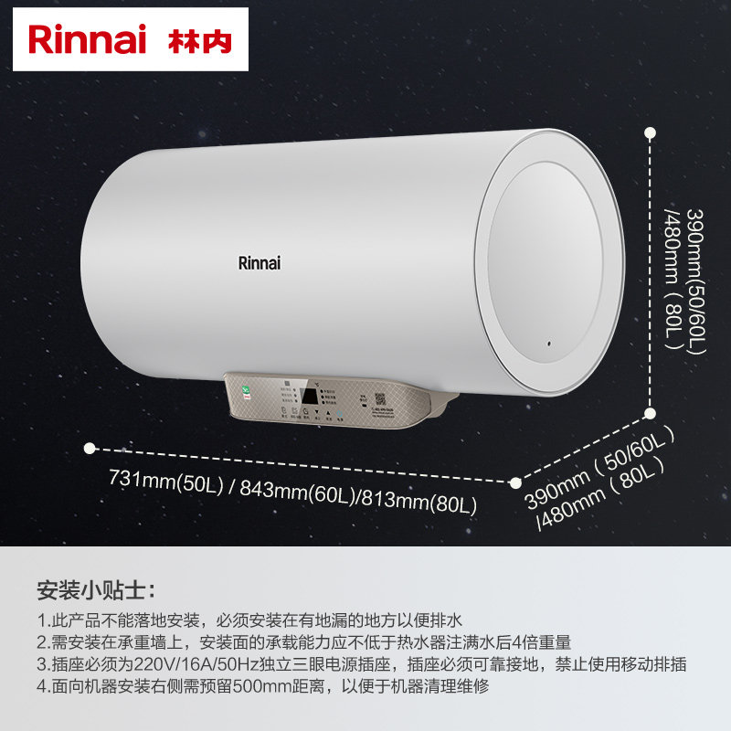 (Pre-sale) Rinnai E02P electric water heater 50 60 80L household water storage type double tube quick heat