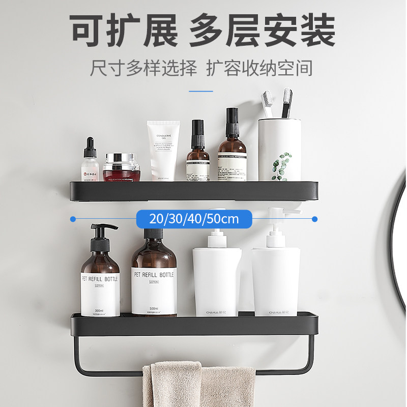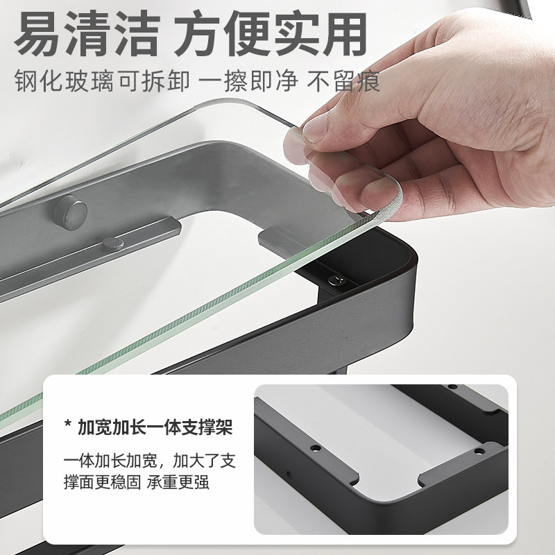 Le Zhijia powder room glass shelf free punch wall toilet toilet wash table mirror bathroom storage