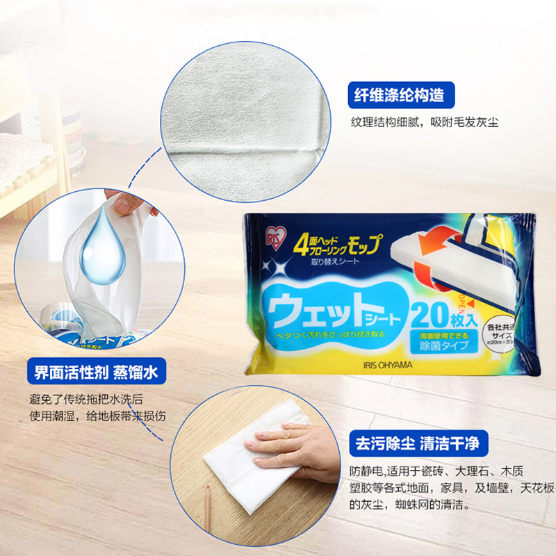 3 packs) Japan IRIS alcohol dust removal paper floor mop wipes disposable mopping mop wet wipes household