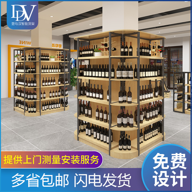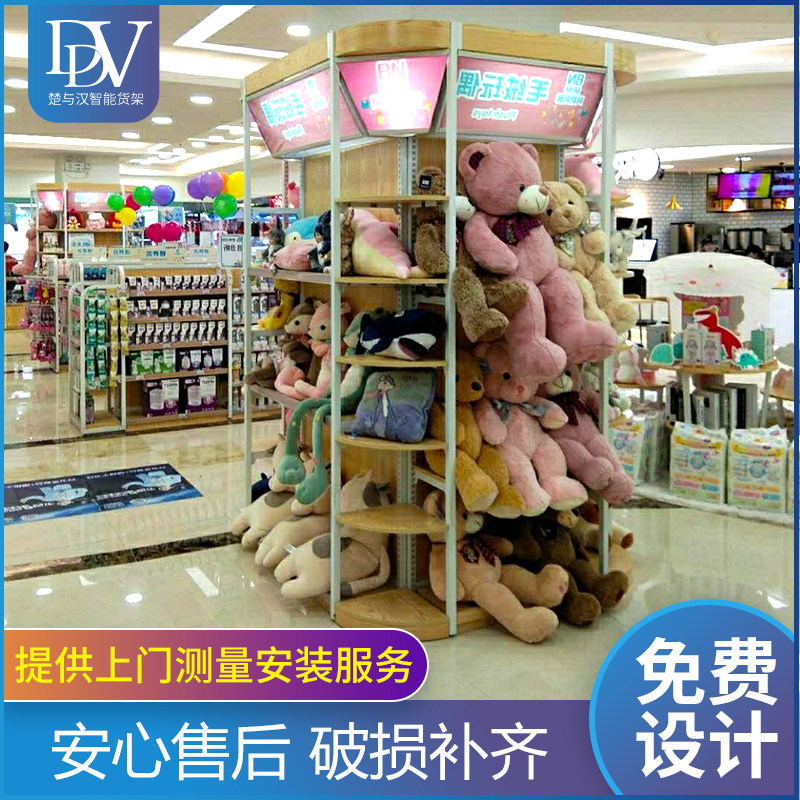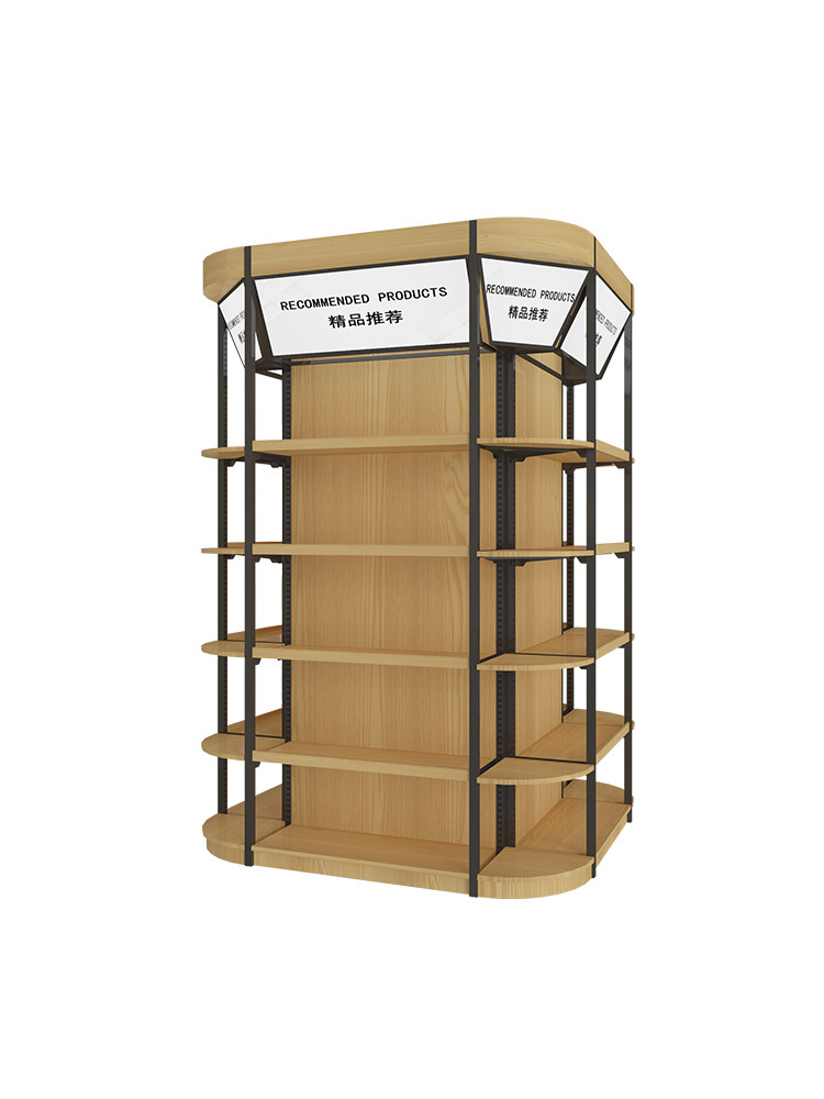 Fresh supermarket package column shelf display rack Steel-wood combination middle cement cylinder Mall square column custom container