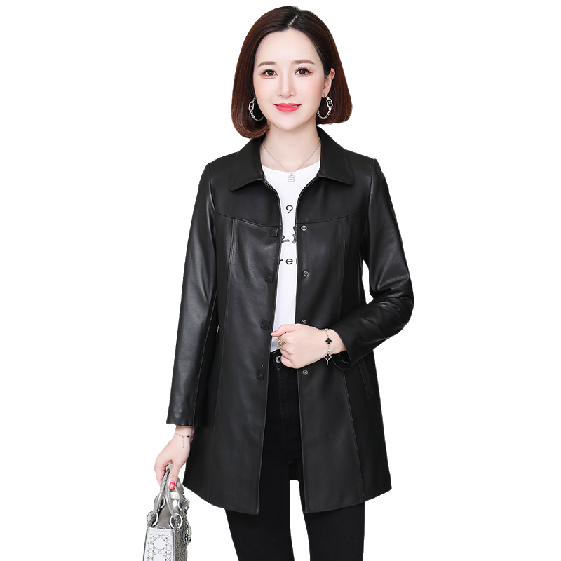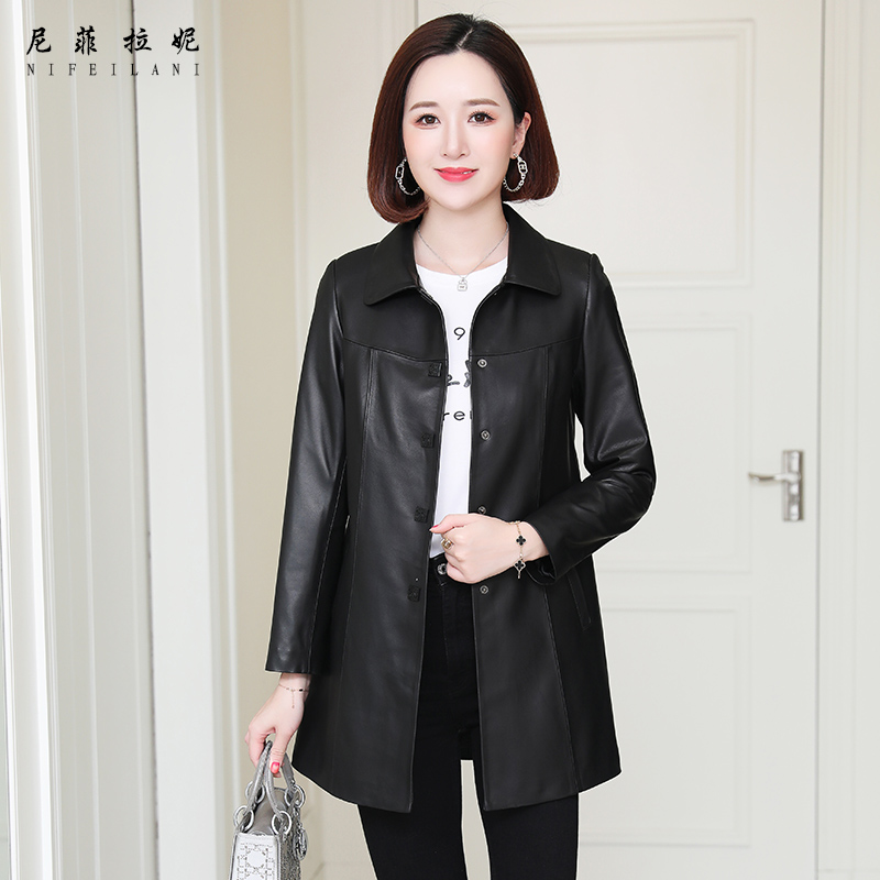 Real leather fur coat female medium long version 2022 spring autumn new middle aged mother lichens heinine sheep leather single windcoat jacket