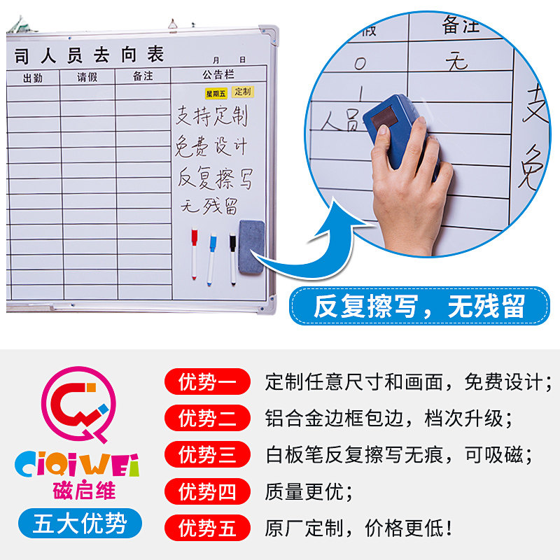 Magnetic Qiwei custom magnetic hanging whiteboard writing board conference office mobile writing board home children's blackboard drawing board bracket teaching training erasable message notes graffiti soft whiteboard