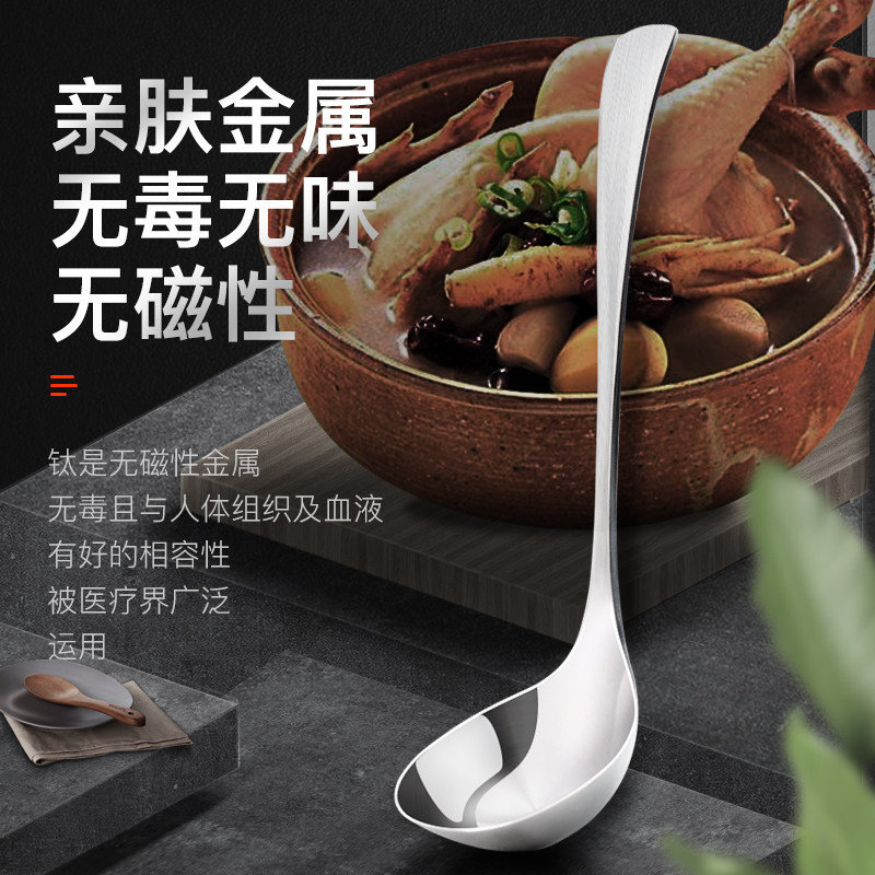 Pure titanium soup spoon household large spoon long handle spoon serving soup drink soup porridge spoon porridge spoon titanium alloy male spoon size