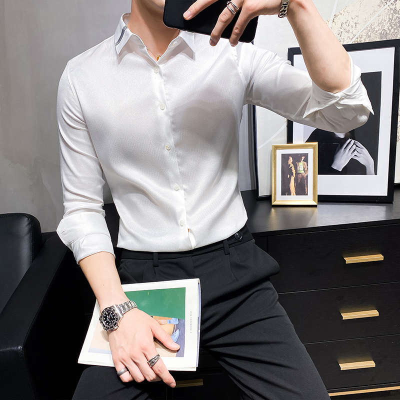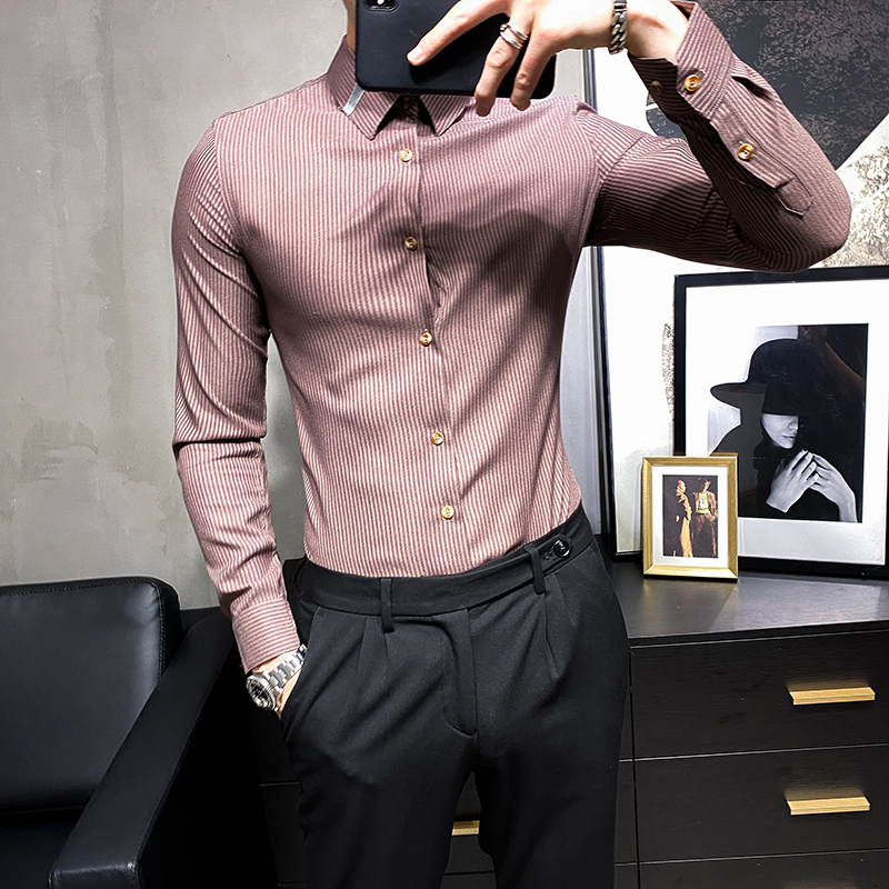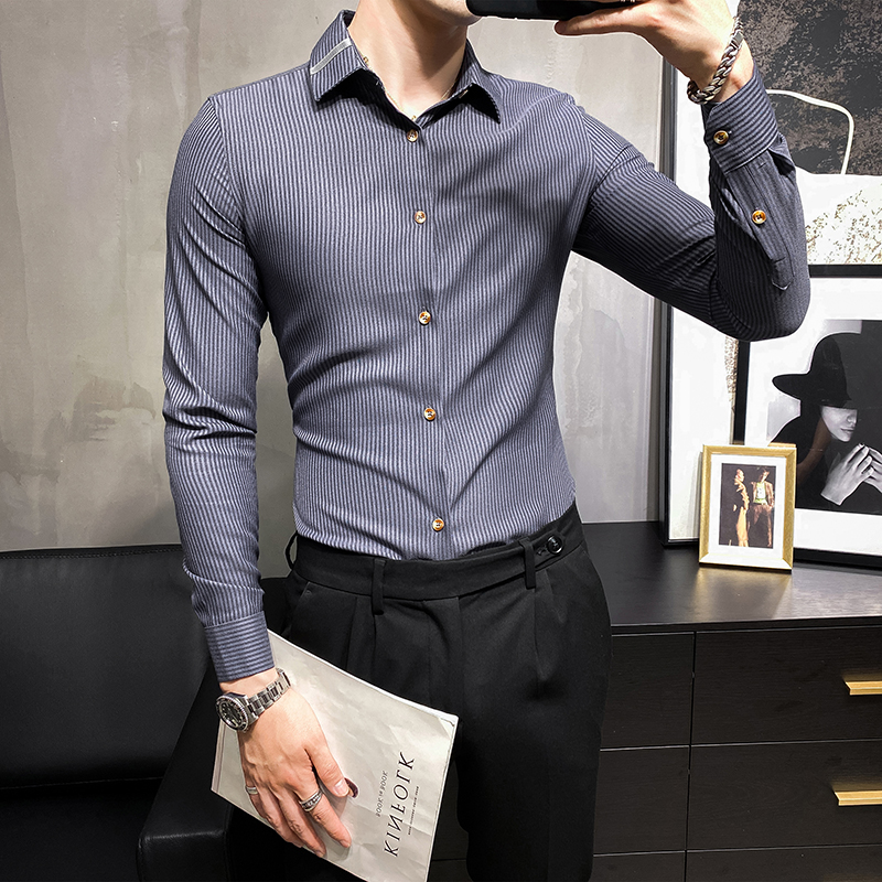Spring and autumn striped shirt male long sleeve Inn Wind Leisure fashion men's shirt Korean version trend to fix the men's clothing