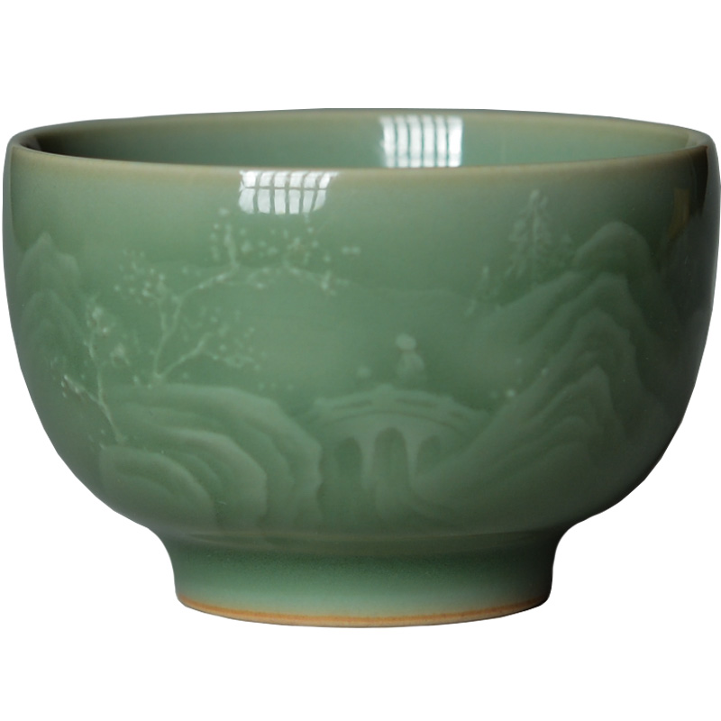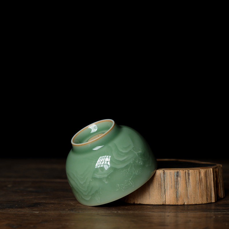 Imitation ancient tea set Longquan plum Qingqing porcelain handmade flower landscape figure Tea Drinking Cup Master Cup Single Gift Box