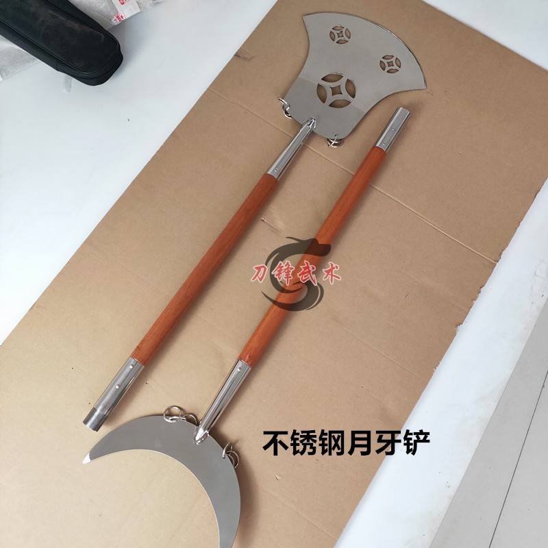 Stainless steel crescent shovel, sapper shovel, martial arts equipment, Zen cane, monk's shovel, Monk's convenient shovel, long weapon, money shovel