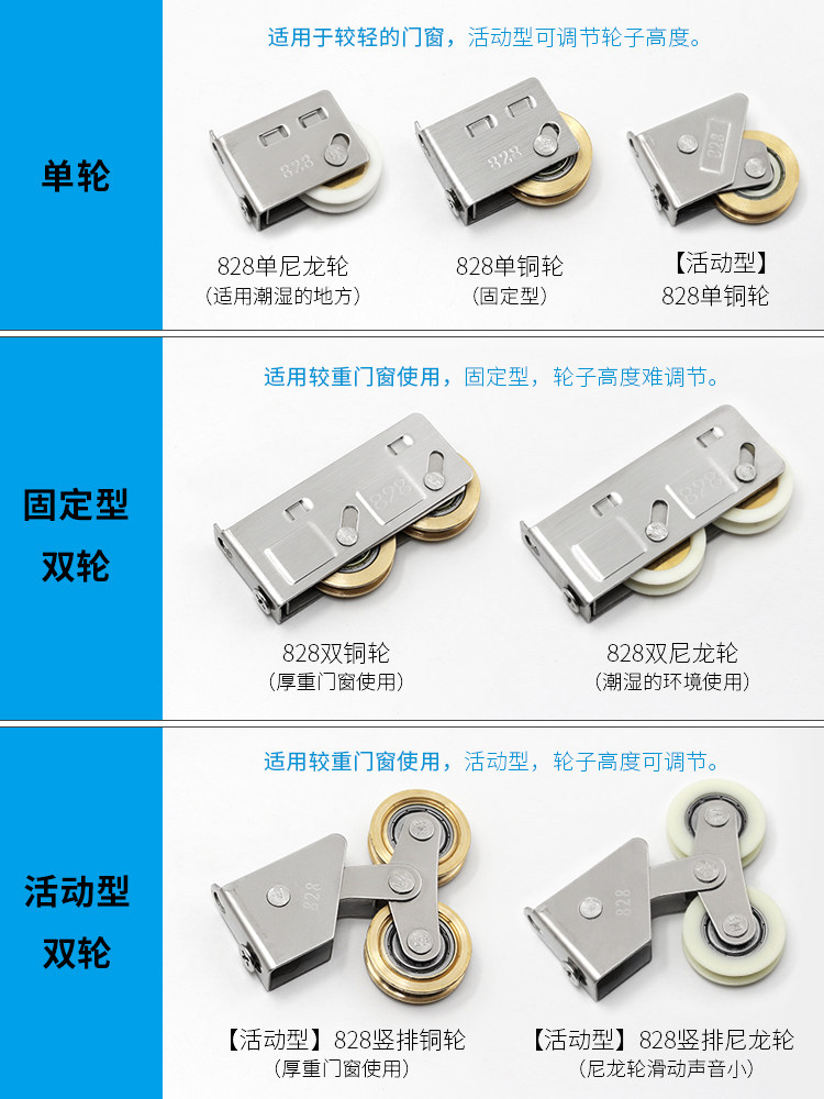 Vintage Type 828 aluminum alloy door and window pulley push-pull window roller sliding door rail stainless steel bearing copper wheels