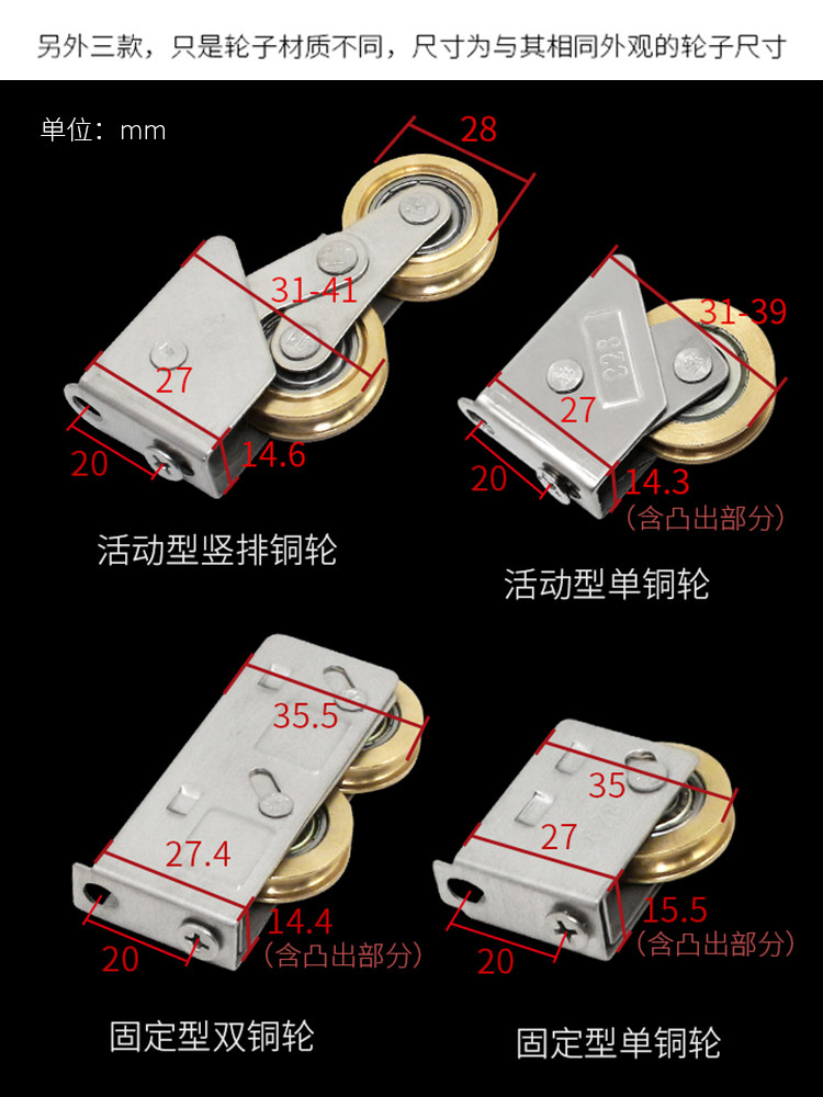 (Fixed type) Copper core nylon single wheel (4 packs) (fixed type) Bearing single copper wheel (4 packs) (fixed type) Copper core nylon double wheel (4 packs) (fixed type) Bearing double copper wheel