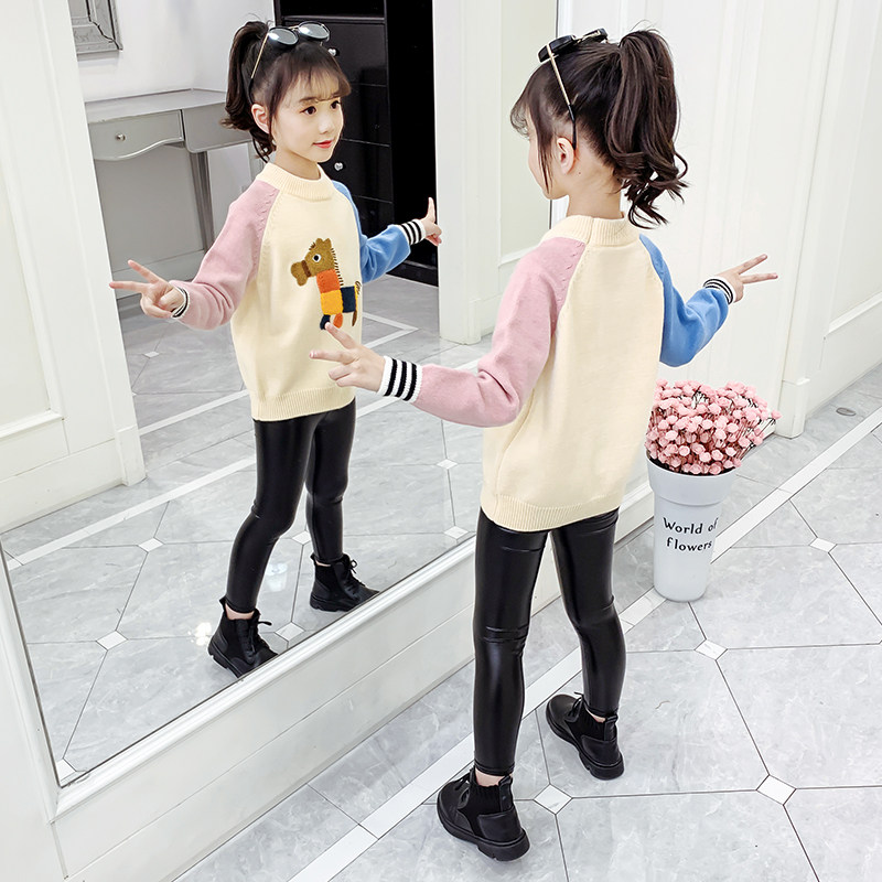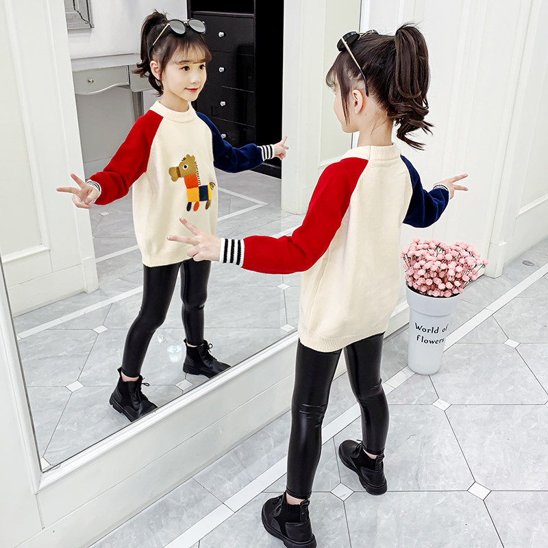 Girl Spring Clothing Children Thin sweater 2022 autumn winter new middle child little girl foreign pie headliner wool knitted sweatshirt