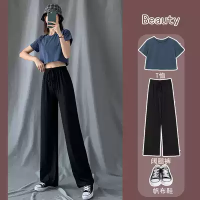 Dance practice clothes ice silk wide-leg pants women's high waist black loose summer nine-point straight trousers body modern thin