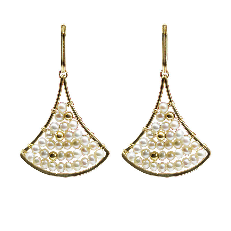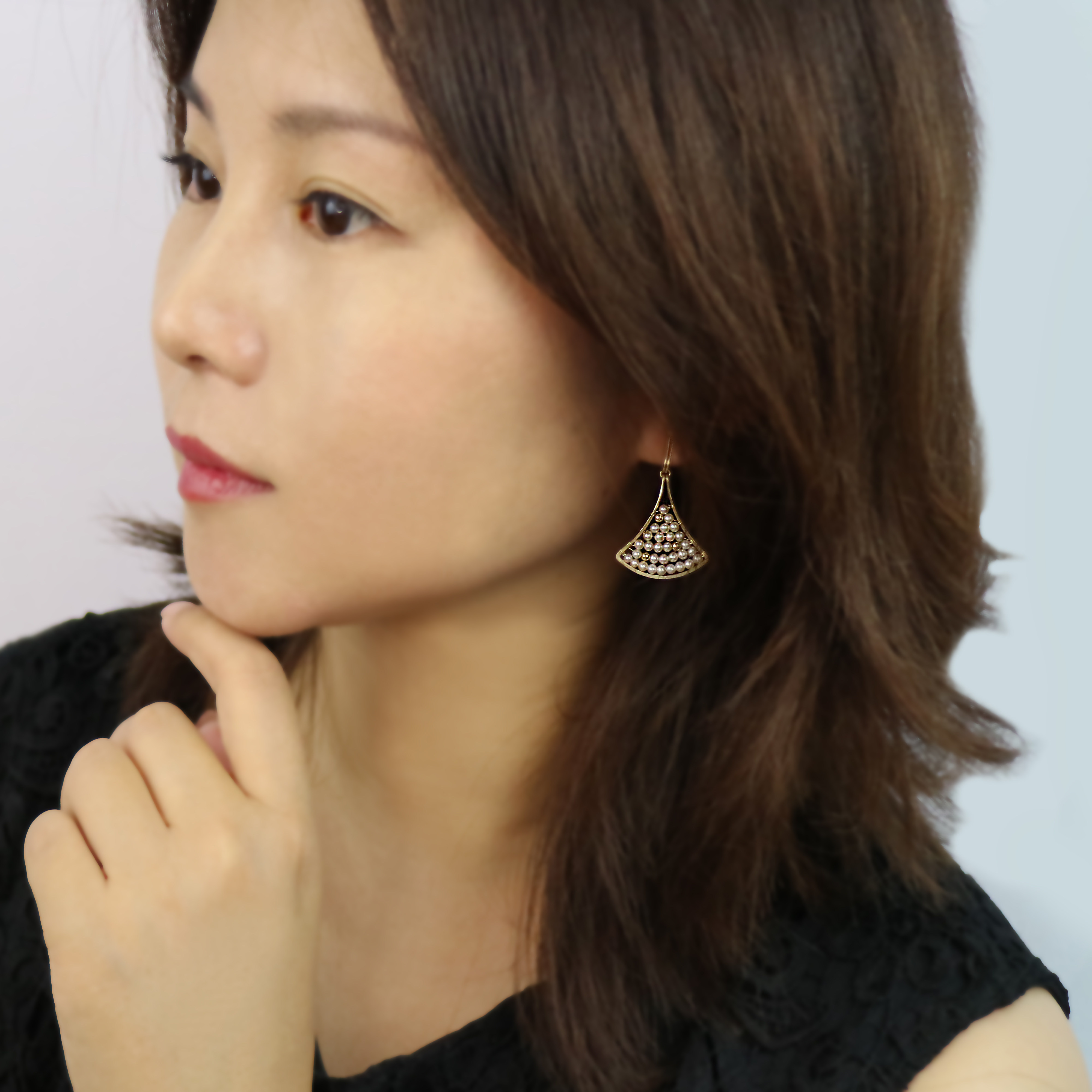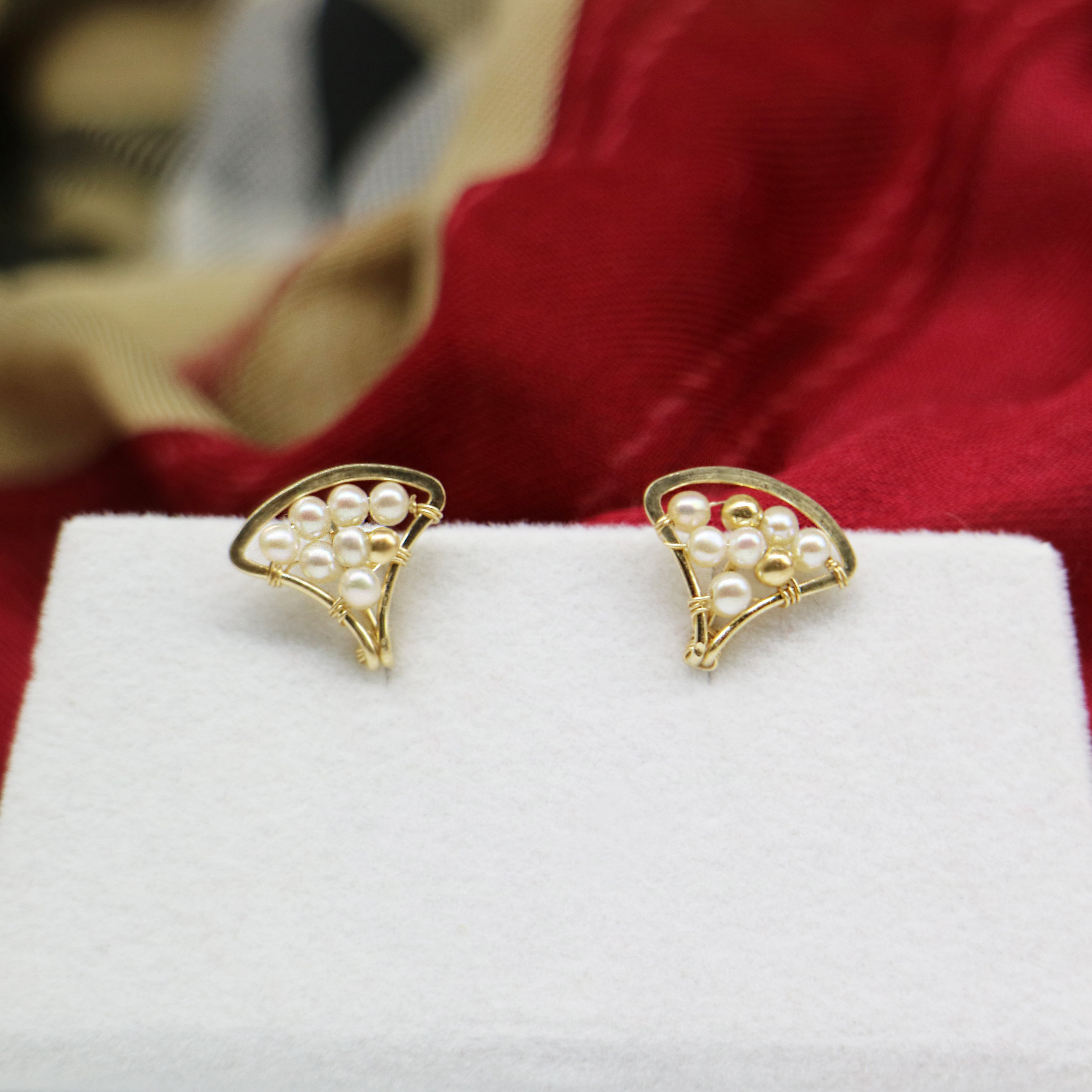 Ginkgo Leaf Sector Glare Fresh Water Pearl Finale EAR CLIP WITHOUT EARBULE Mosquito Coil Pan Without Pain Earrings