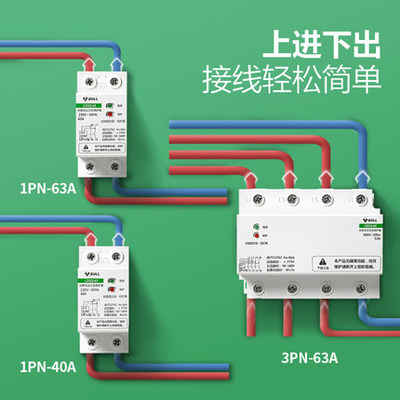 Bull circuit breaker switch household 220v self-duplex automatic reset overvoltage undervoltage protector current overload 63a