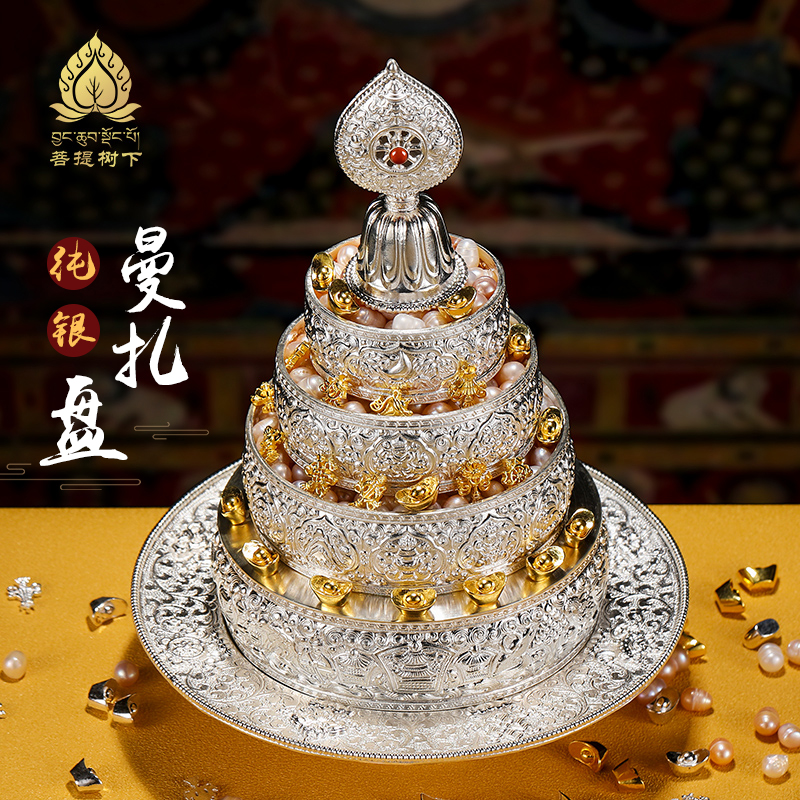 Tibetan legend S999 sterling silver Manza plate Eight auspicious Manza 37 piles of Tuman tea Romanda dribbling tray full set 10cm