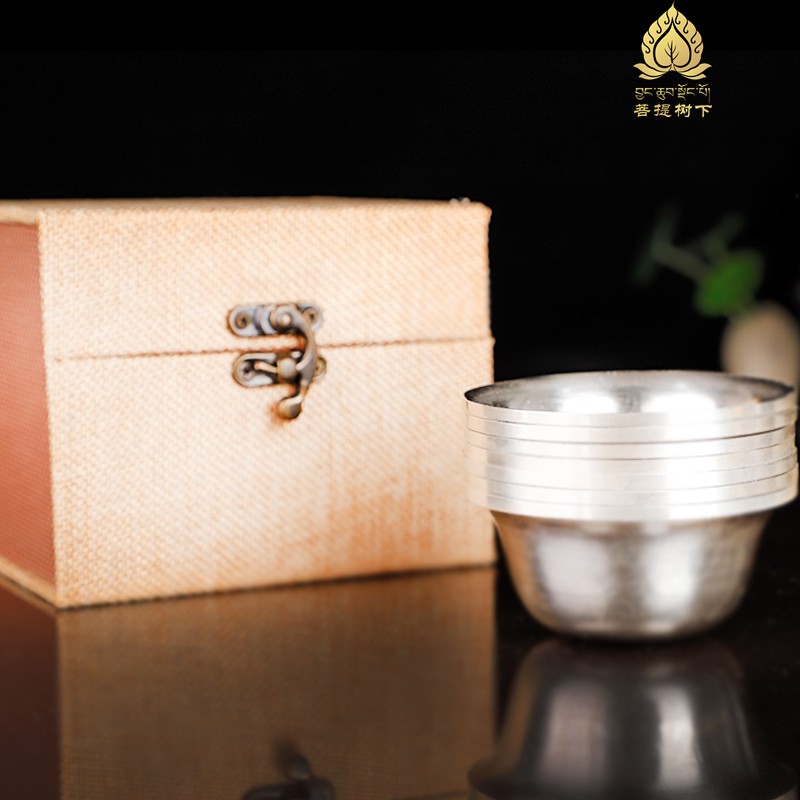 Buddhist supplies Foot silver 990 sterling silver water supply bowl Glossy water supply cup Water purification bowl Water cup thickened 8cm