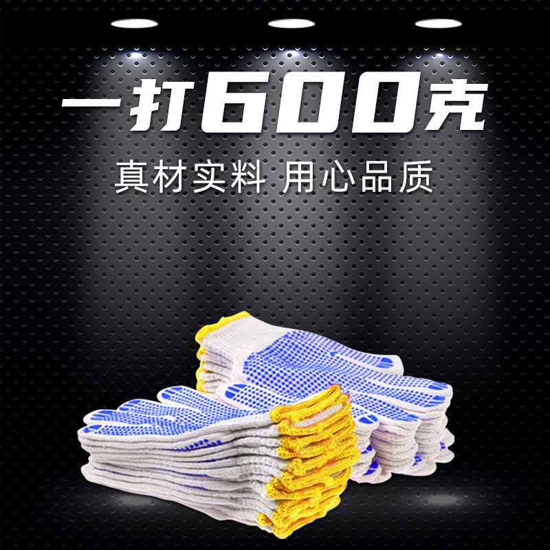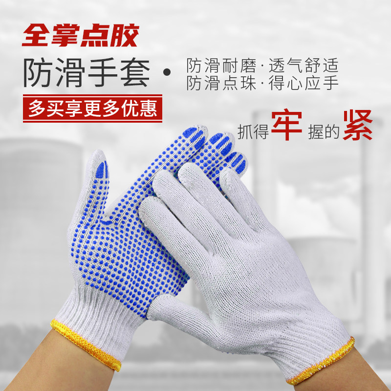 Gloves labor insurance non-slip wear-resistant plastic beaded gloves glue white yarn handling male construction site work with glue thin section