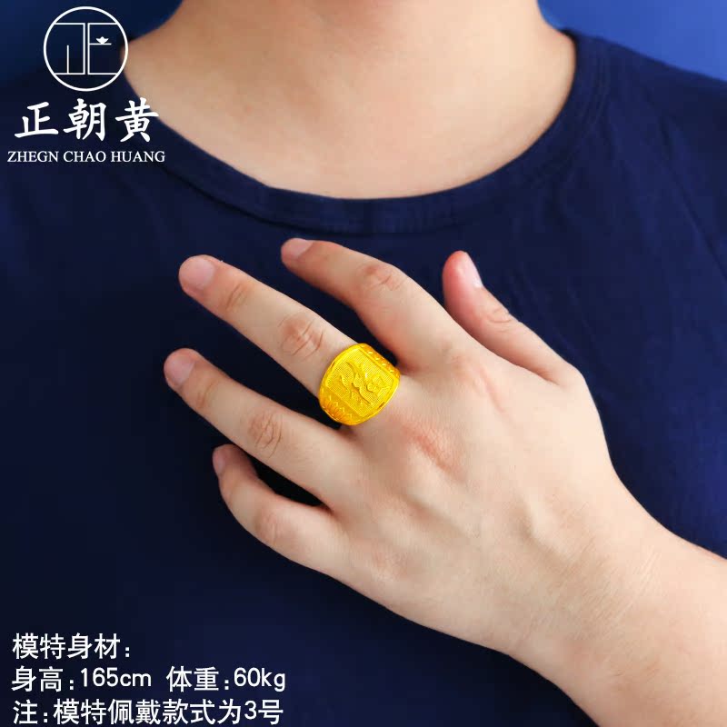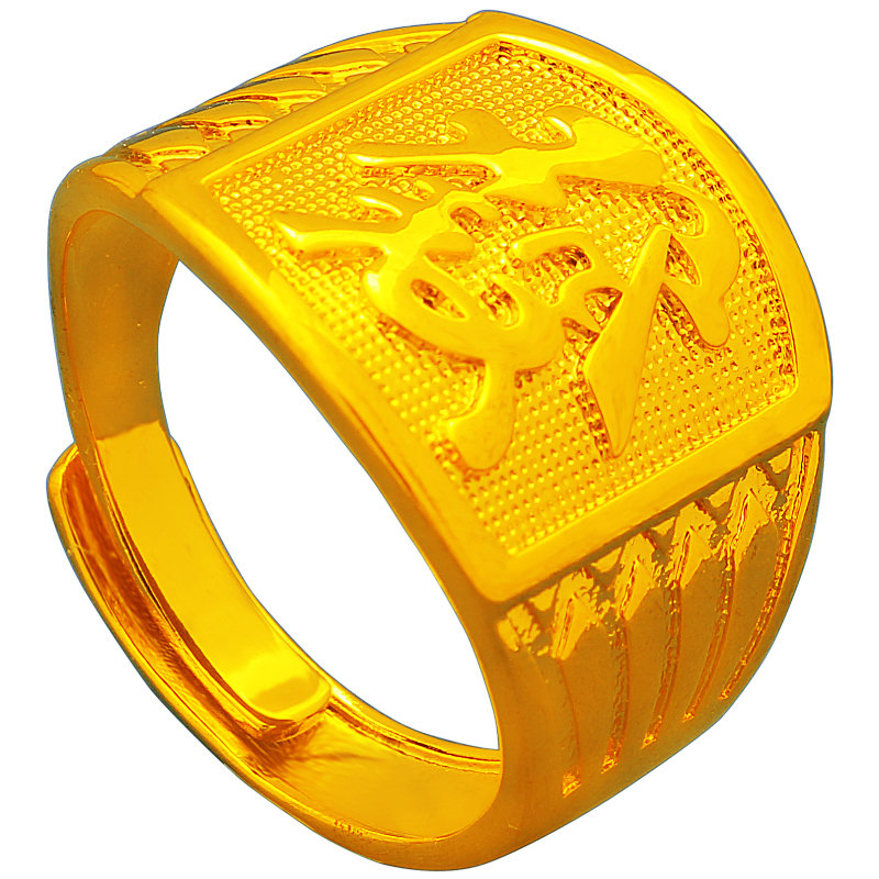 Gold plated men's gold ring Caifu fortune words live fashion for a long time without losing colour overbearing gold jewellery owner elders