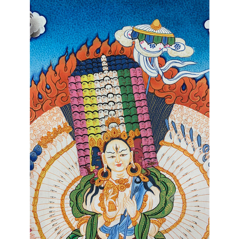 Small-scale large white umbrella cover Buddha mother hand-painted Thangka Nepal Tibet pure handmade living room hanging painting Buddha statue decorative painting