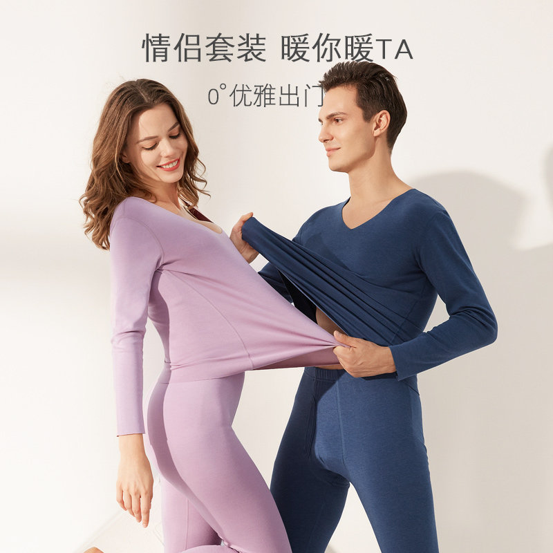 Olin Yard velvet seamless thermal underwear suit for men and women thickened plus velvet autumn clothes and long johns autumn and winter bottoming suit