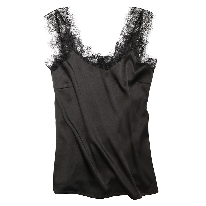 MOTOKYO white hanging vest female with a silk satin and sexy V collar with lace tops