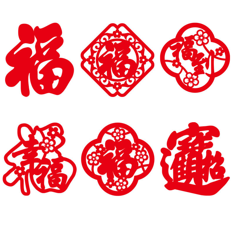 Xiaofuzi (10) Window-shaped Fuzi (10) Fortune (10) Happiness (10) Plum Blossom (10) Lucky Fortune (10) 6 types of small blessing characters mixed