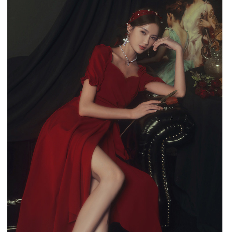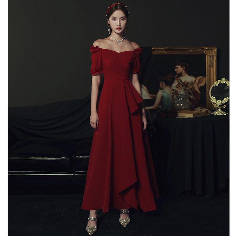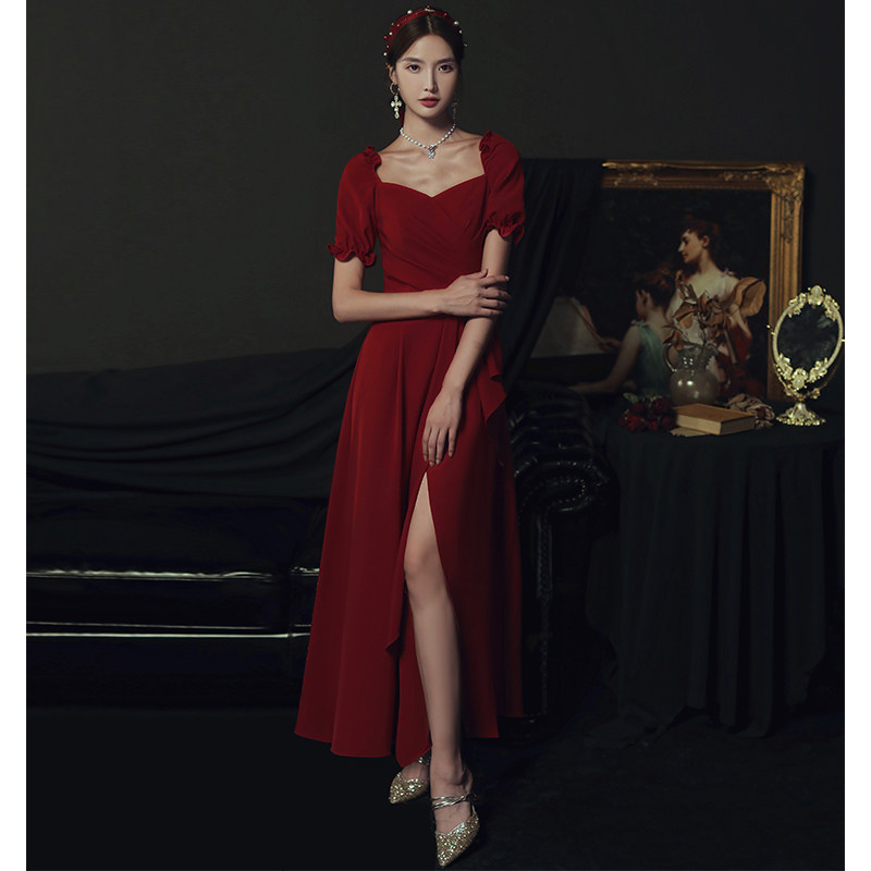 Toast to the bride 2022 new summer wine red wedding evening gown dress normally able to wear atmospheric betrothed slim