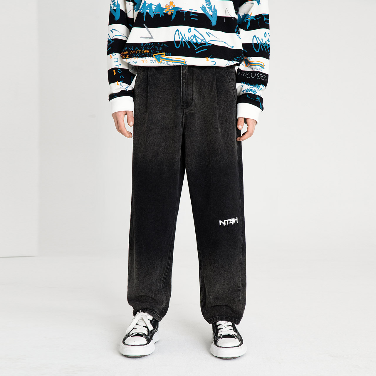 Lilbetter men's jeans gradient gray loose trousers European and American street casual pants straight pants men's trend