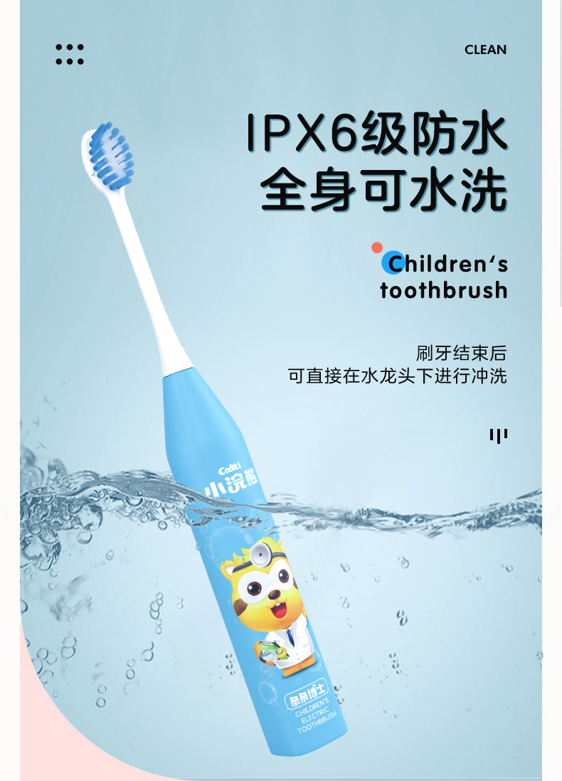 Baby Raccoon sonic electric toothbrush 3 years old 6-12 years old baby soft hair brush head waterproof non-rechargeable