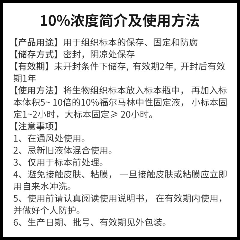 10% Formalin Solution Embalming Specimen Fixed Liquid Loss Tissue Neutral Bottle Formaldehyde Bottled Fish Drug Aquatic Beast for Pathological Sending of Livestock Breeding Thimerosal