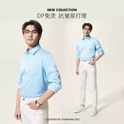 SHANSHAN SHANSHAN Men's 2021 Spring/Summer Classic Business Iron-Free Anti-Wrinkle Stripe Cotton Shirt