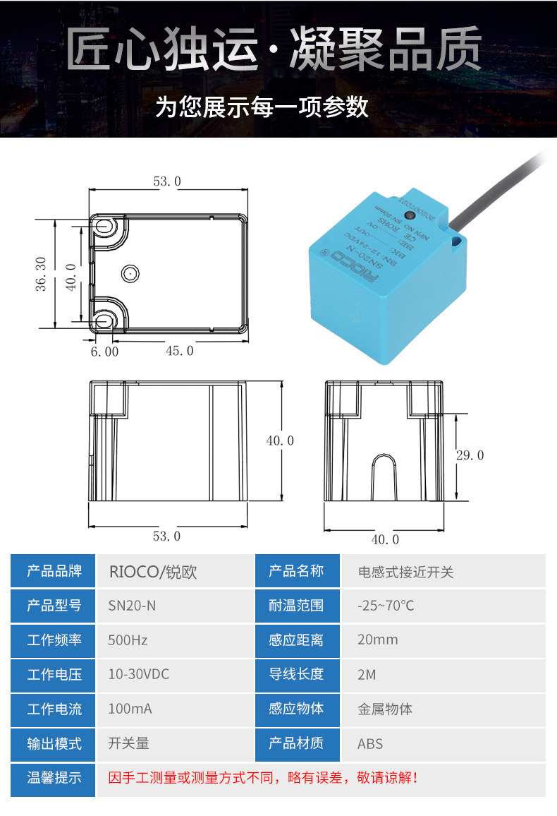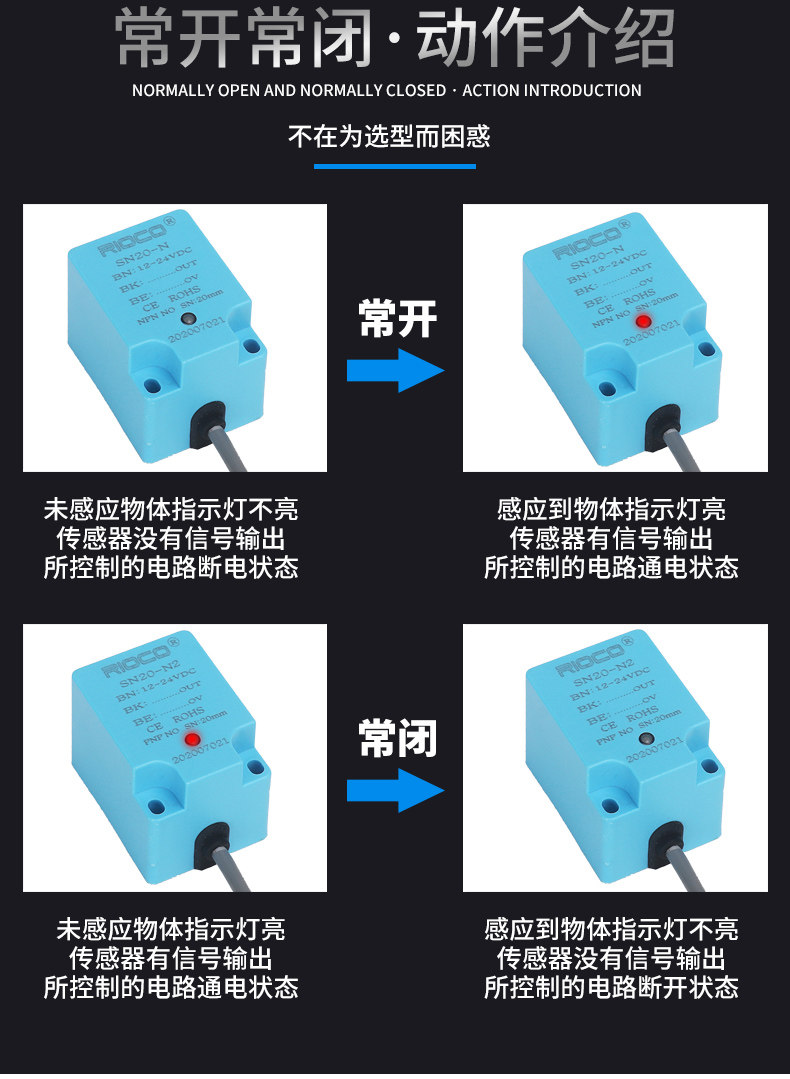 Original fit square proximity switch SN20-N third-tier NPN normally open 24V close to sensor sensing distance 20MM