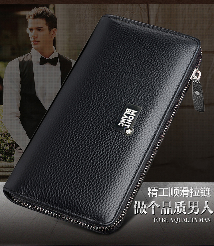 New men's long wallet leather zipper wallet cowhide bag handbag business clutch casual clutch bag tide