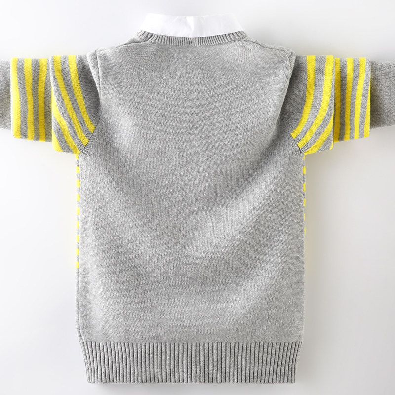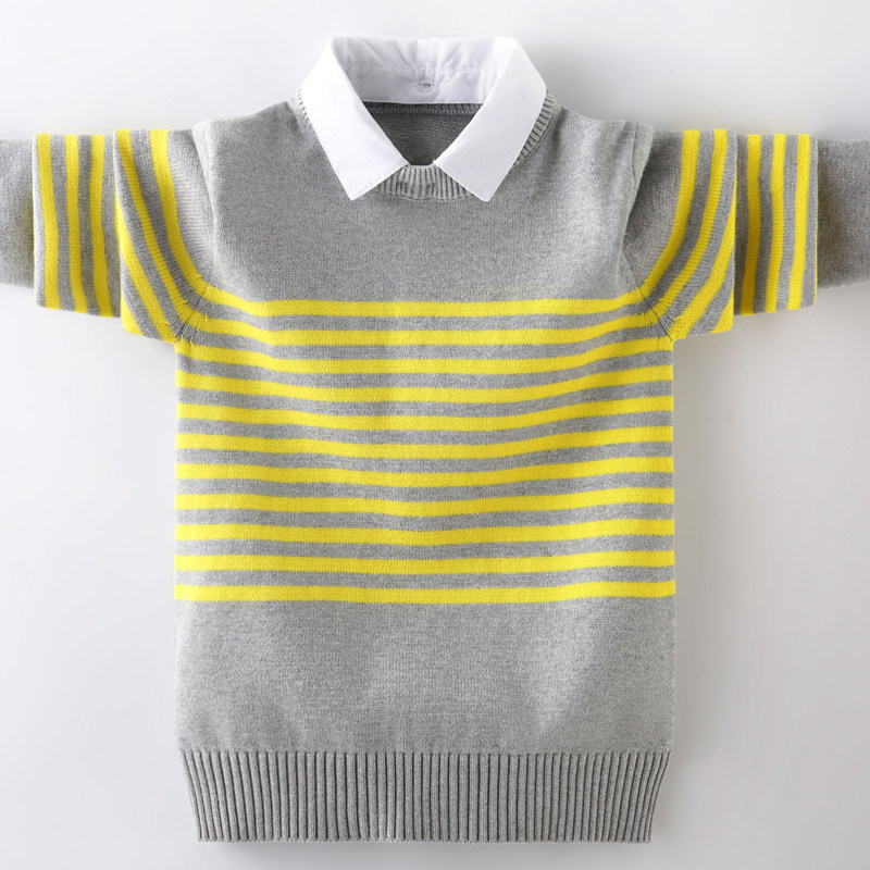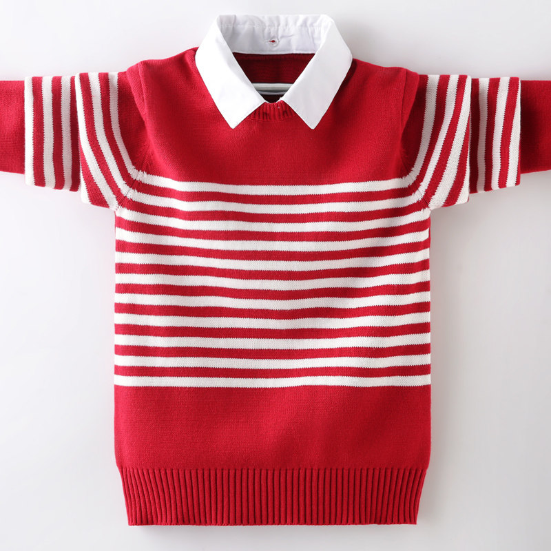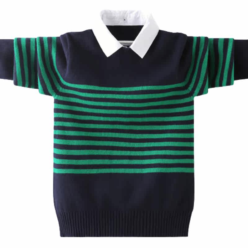 Boys' sweater spring and autumn thin section 2020 foreign style big children's knitted sweater pure cotton bottoming shirt children's striped sweater 12