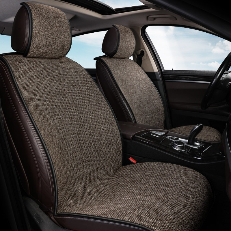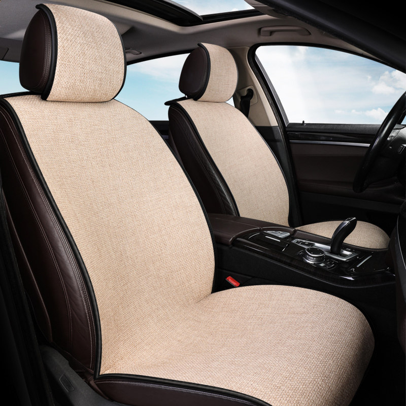 Car Seat Cover All Season Universal Breathable Cool Mat Cotton Linen Cloth Art Anti Slip Free Bundled Summer Cushion Half Bag Circumference Seat Cushion
