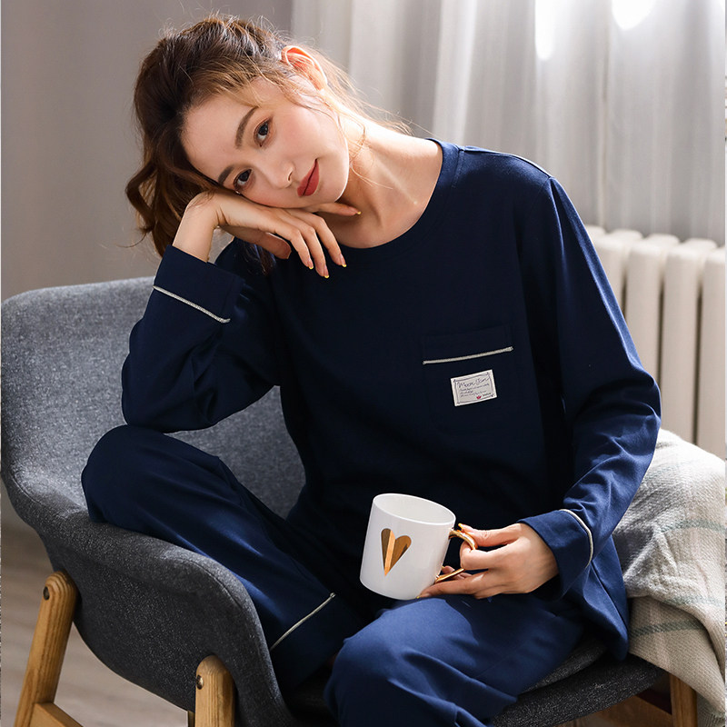 Pajamas Ladies Spring and Autumn Long Sleeve Cotton Loose Casual Round Neck Pullover Middle-aged Mom Homewear Suit Thin Section