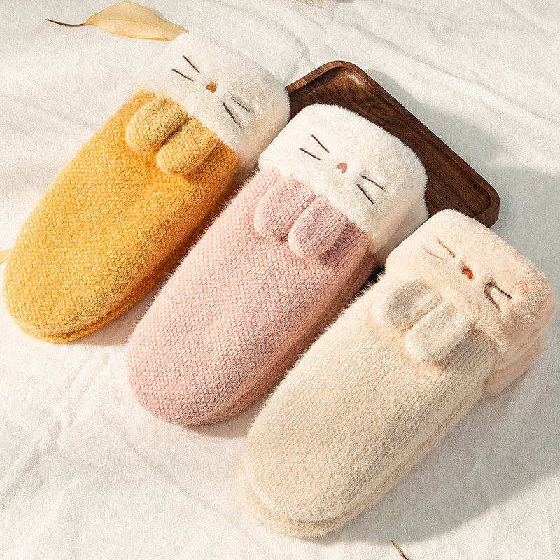 2020 new men's and women's winter warm gloves double-layer thickened and fleece student knitted outdoor riding touch screen