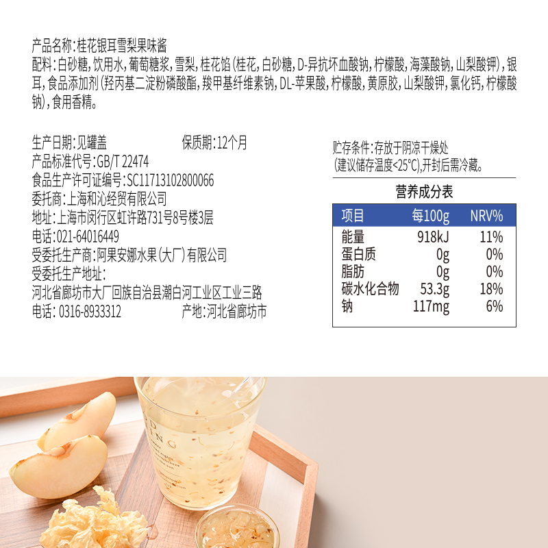 Vitaconcept Osmanthus Tremella Snow Pear Fruit Jam 1KG Chinese Tea Shop Beverage Syrup Raw Material Free Cooking