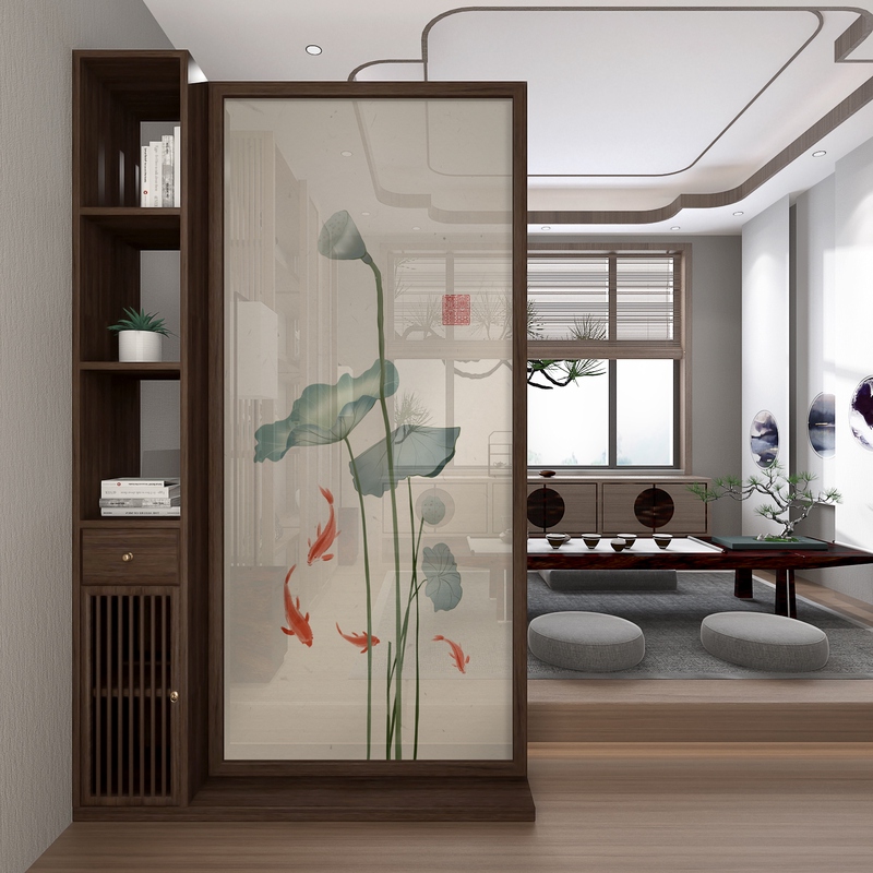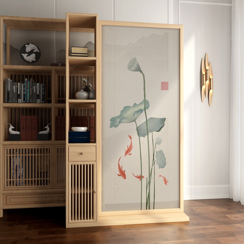 New Chinese Screen Partition Living Room Bedroom Shelter for Home Entry Xuanguan Zen Solid Wood Removable Storage Cabinet