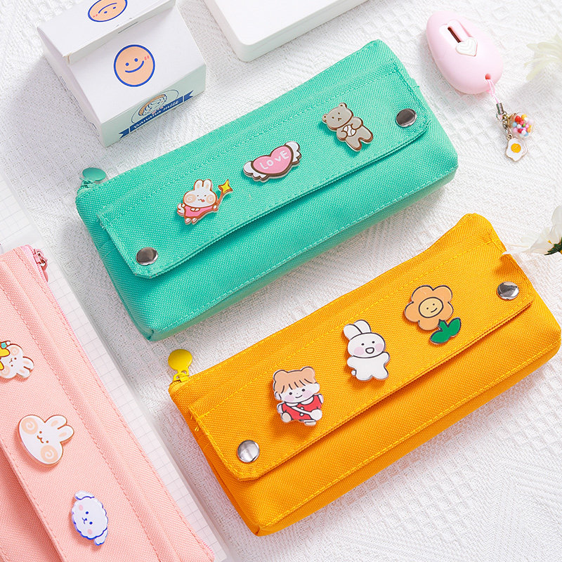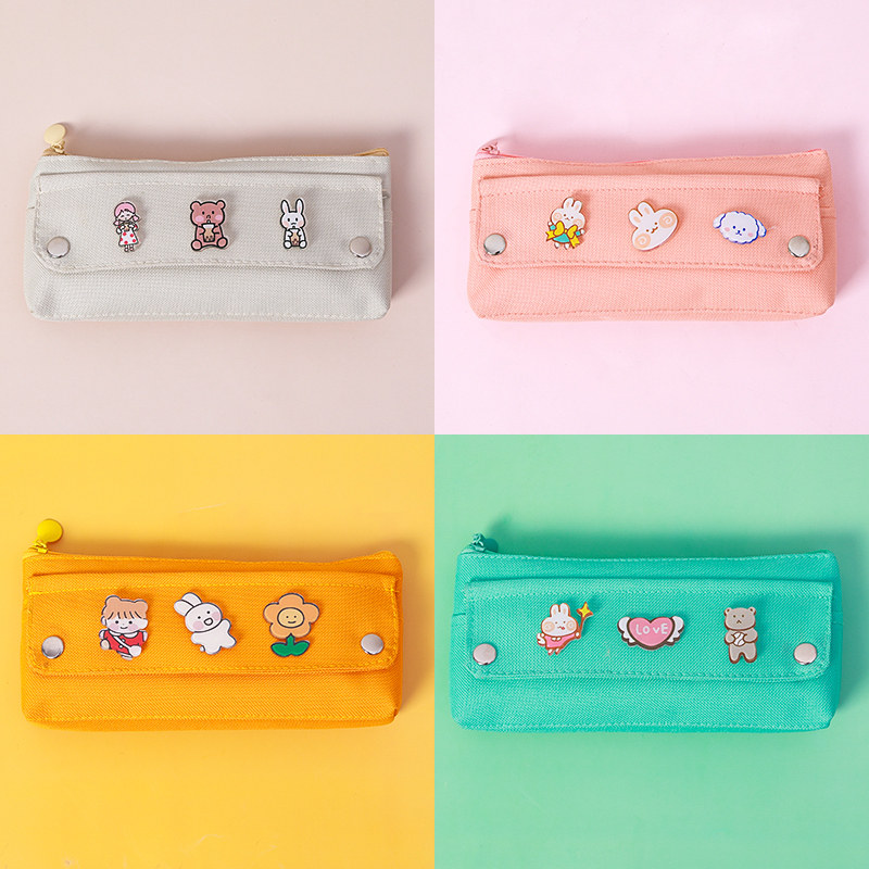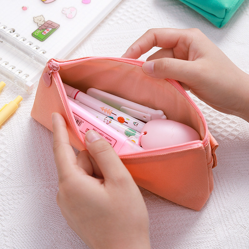 Innovation New Pen Bag Female Male Brief Pure Color Large Capacity Stationery Bag Children Elementary School High School High School High School High School Students Cute Salt Department Art Brooch Canvas Pen Bag Day Family Of Craze Pencil Bag Box