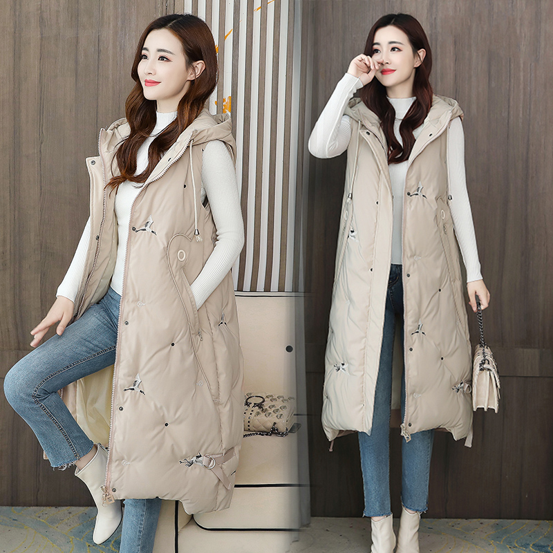 Feather cotton nails female medium long edition of knee Korean horse clip fattening large size cotton shoulder autumn and winter vest coat new
