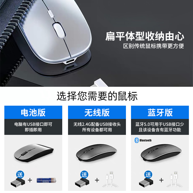 For Huawei Dell Lenovo HP Wireless Mouse Rechargeable Silent Bluetooth Dual Mode Battery Ultra Thin Mouse Girls Apple Xiaomi Laptop Desktop Women Universal