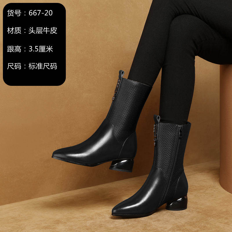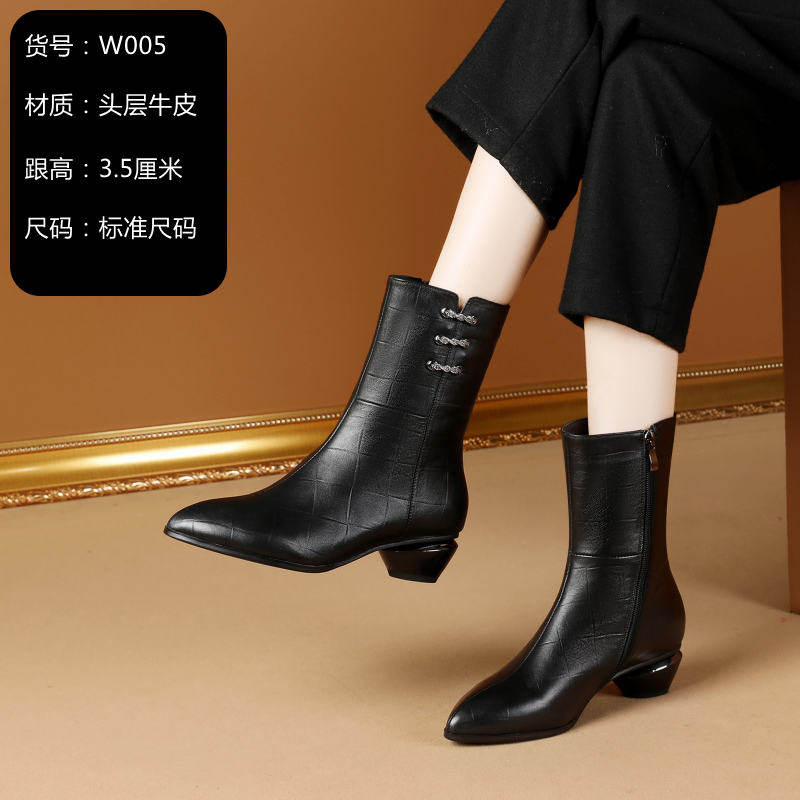 Special offer broken size clearance leather mid-well boots plus velvet winter boots all-match leather women's boots thick heel cowhide large size women's shoes
