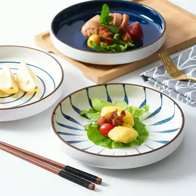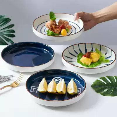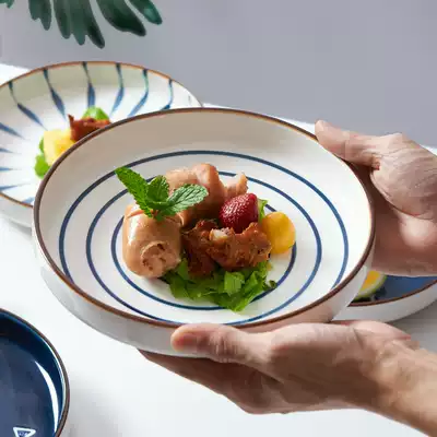 Japanese hand-painted ceramic tableware large soup plate household plate creative net red round deep plate Nordic breakfast plate