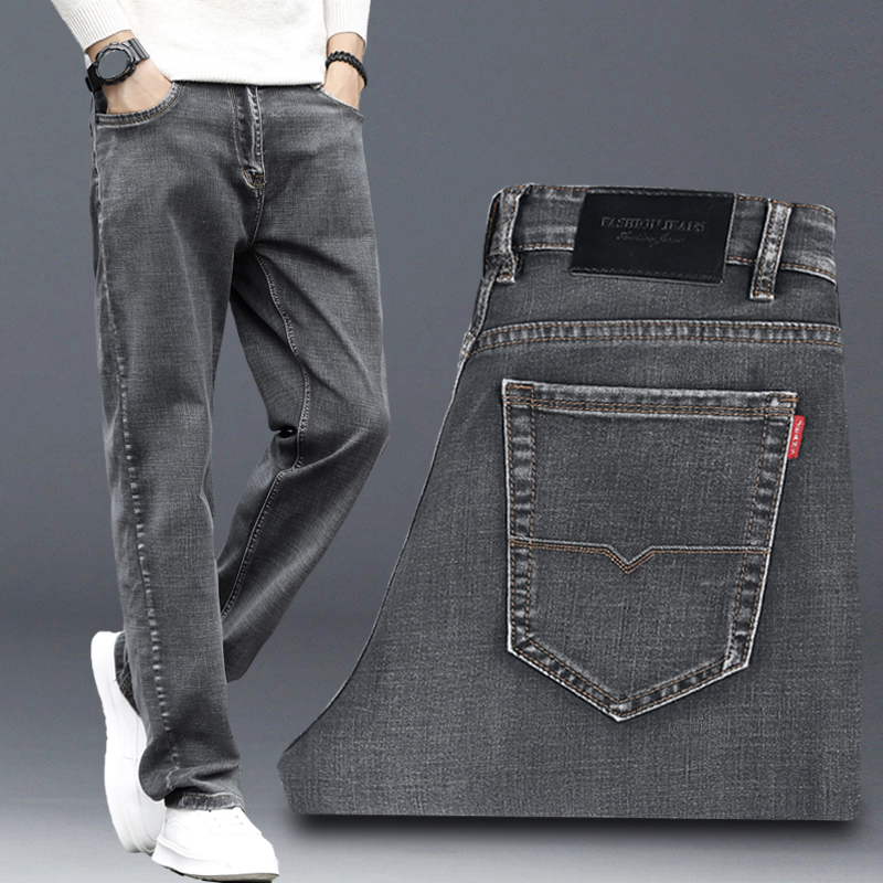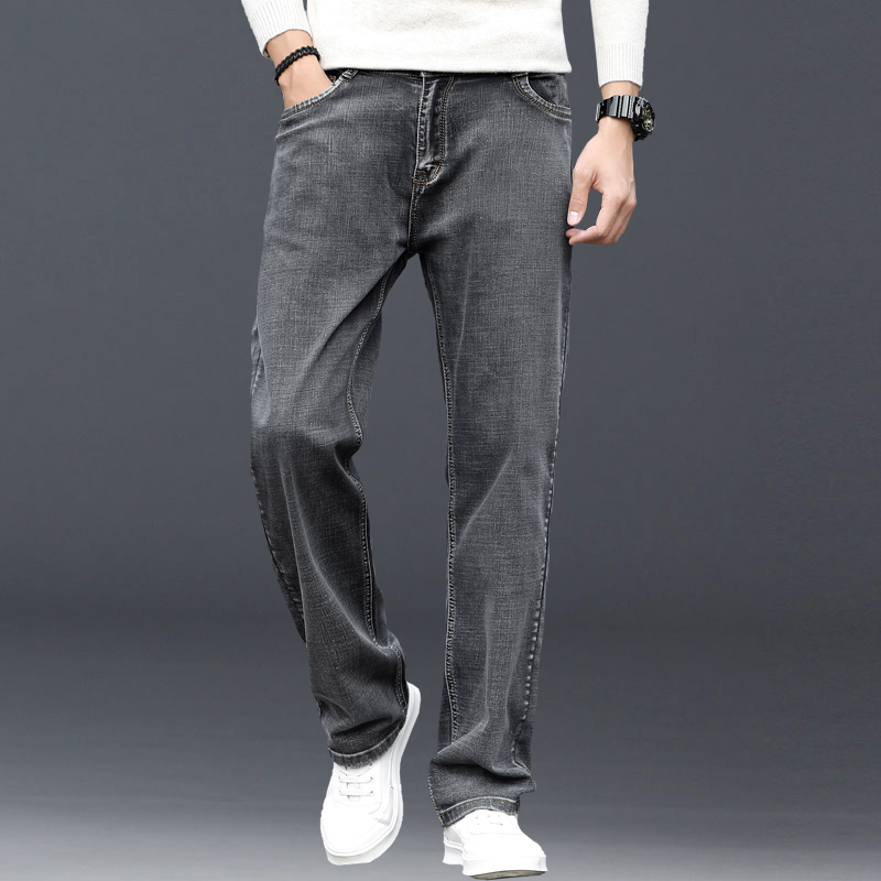Autumn new smoke gray jeans men's straight loose wide legs plus fat plus size spring and autumn casual trousers