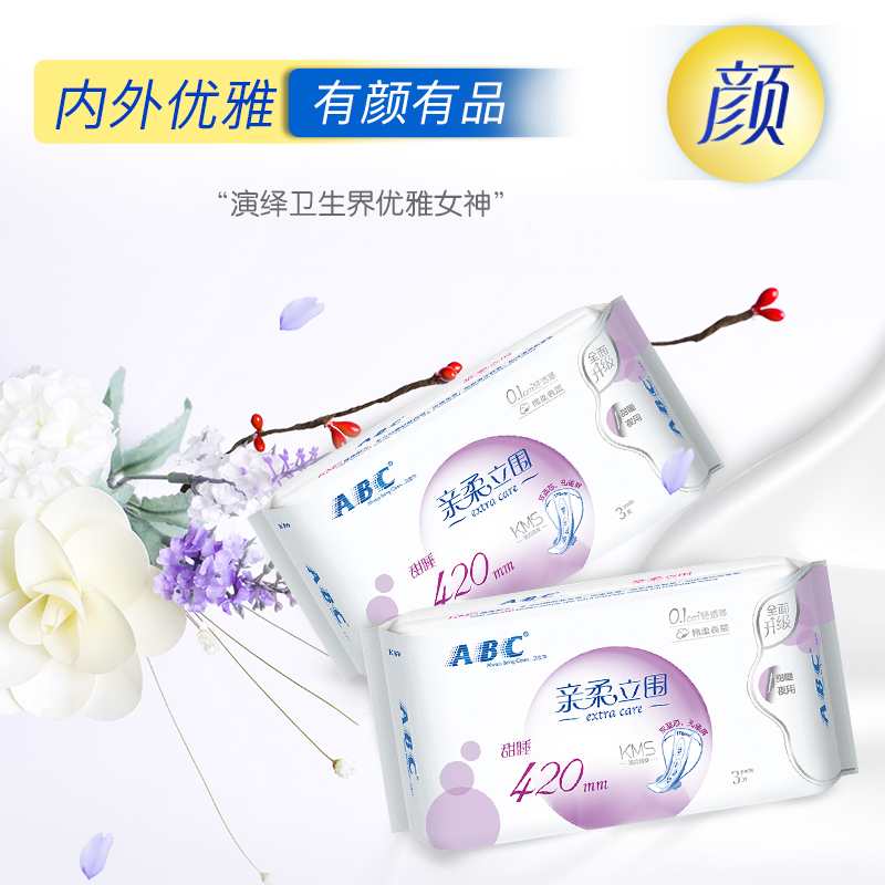 ABC Night with sanitary napkins 420mm ultra-thin maternal aunt Towel Woman Breathable clear and complete box Dress Official Flagship